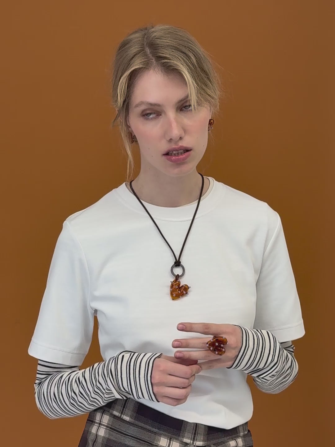 All of our pieces are handcrafted one by one using the traditional glassblowing technique. We intentionally avoid using molds, ensuring that each creation is truly unique and unrepeatable. For our necklaces, we also carefully select natural stones.