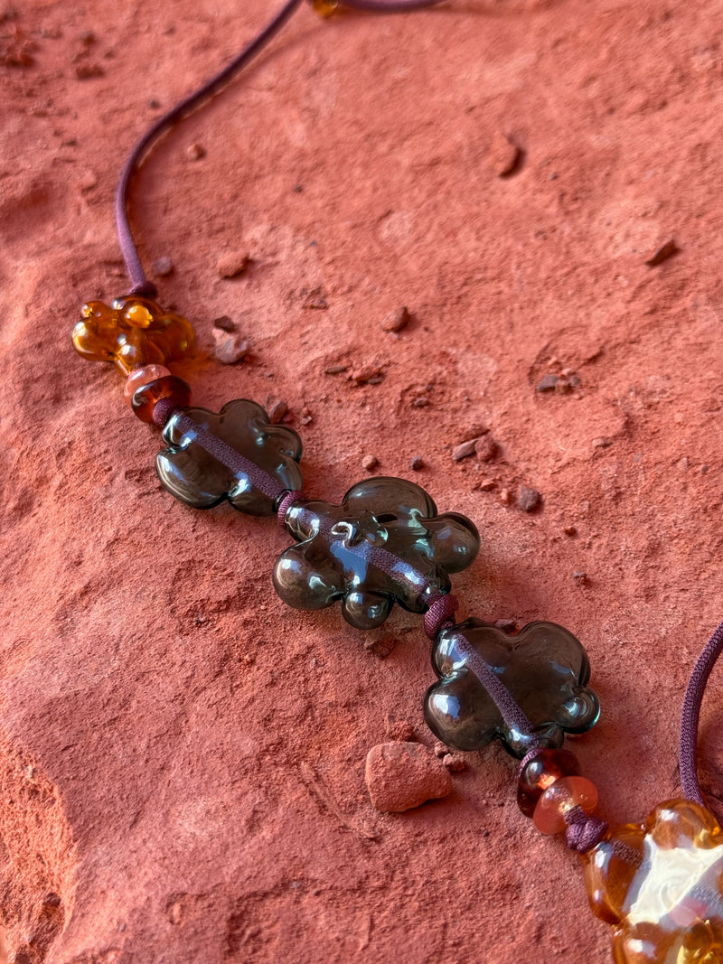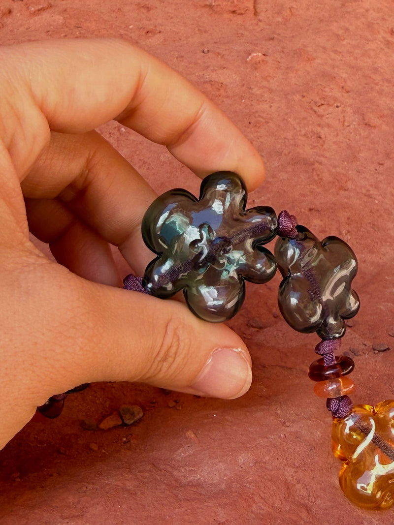 All of our pieces are handcrafted one by one using the traditional glassblowing technique. We intentionally avoid using molds, ensuring that each creation is truly unique and unrepeatable. For our necklaces, we also carefully select natural stones.